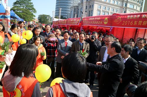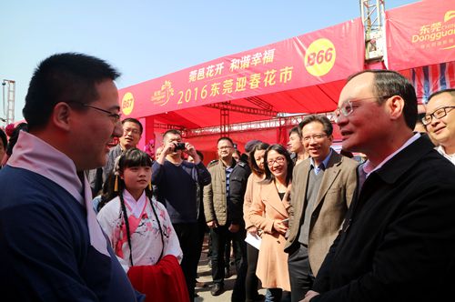 在东莞市迎春花市调研中,袁宝成市长表示迎春花市是东莞市新春节庆活动中的一台重头戏,给大家带来更浓更多的“年味”,并让广大群众了解更多关于东莞的民俗节日特色与传统文化。期间,袁市一行在花店前向相关工作人员进行新年慰问,并了解今年花价花量的情况,与去年进行了比较。花市负责人说,花市期间,主要展销各类年桔菊花、高档盆花、人造花木、艺术插花、草本植物、鱼虫奇石、节庆用品等。花市分为五个区域,分别是年桔盆花展区、高档花卉展区、节庆用品展区、年货展区以及少量桃花展位。一些花店负责人说,因受降雨降温天气的影响,今年的鲜花都有所涨价,且涨价幅度不小。例如年桔一盆平均涨价近50元。总体预计销售情况跟往年持平。不过也有花店负责人说,今年春节前后天气比较好,自然逛花市的人都会增多,销量也会增多。