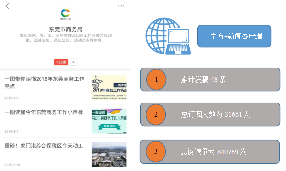 1、通过传统媒体主动公开信息情况。2018年以来,接待国家、省、市媒体采访十余次,协助宣传部跟进好央视、央广、新华社、东莞日报、南方日报、南方都市报等多家家重点主流媒体团采访,先后配合南方日报、东莞日报、东莞电视台等主流媒体完成了 “东莞开放型经济高质量发展”系列报道,“全面构建开放新格局”系列报道,“莞邑春来早、奔跑追梦时” 大型采访报道,主动策划对我市经济运行指数、企业运行概况、加工贸易创新发展等重点工作进行宣传报道,宣传效果显著。